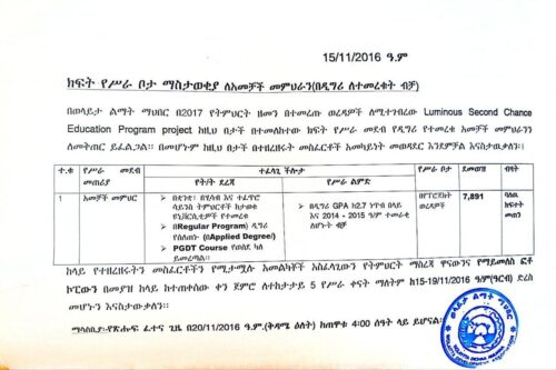 Wolaita Development Association wants to announce a new vacancy based on the criteria listed below for a three-month contract.